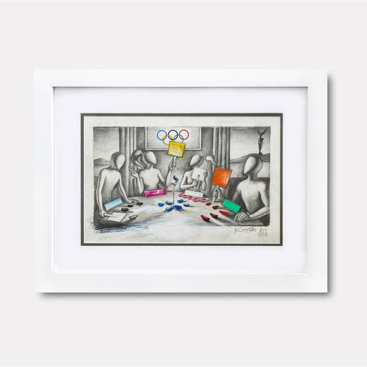Kostabi's journey in art began in Southern California, where he studied drawing and painting at California State University, Fullerton. In the early 1980s, he relocated to New York City, immersing himself in the vibrant and rebellious East Village art scene. It was during this time that Kostabi developed his signature style, featuring anonymous, faceless figures that serve as metaphors for the alienation and depersonalization prevalent in modern society.
