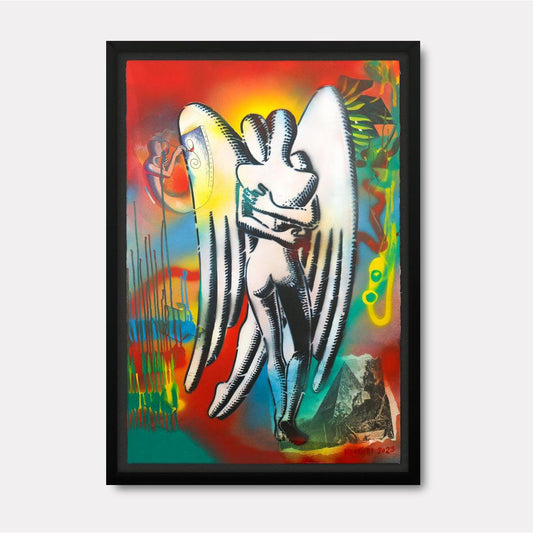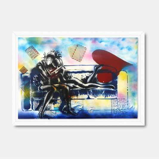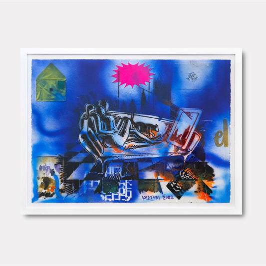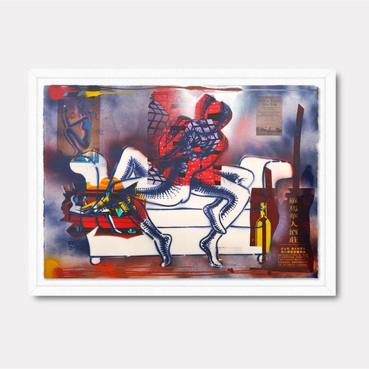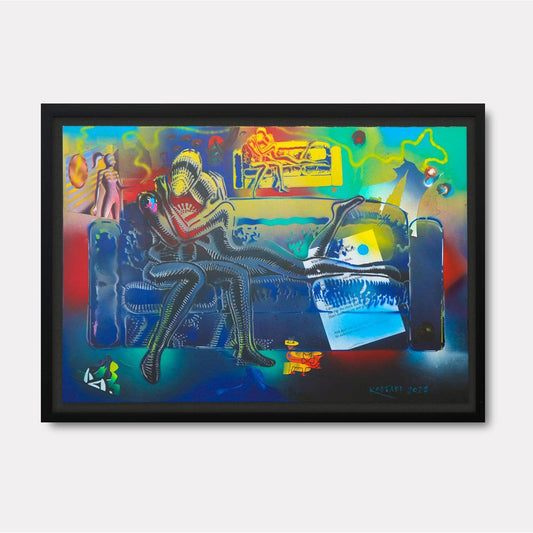 Kostabi's art is a commentary on the human experience, often reflecting the disconnection between individual identity and the homogenizing forces of consumer culture. His faceless figures, set against surreal and often abstract backgrounds, evoke a sense of existential questioning, challenging viewers to consider their place within a world dominated by materialism and conformity.