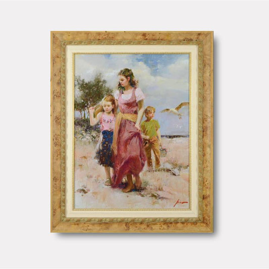Pino was an Italian-American artist renowned for his romantic and emotionally charged paintings, often depicting beautiful women, children, and intimate family scenes. Born in Bari, Italy, Pino studied at the prestigious Academy of Fine Arts of Brera in Milan before immigrating to the United States. His distinctive style, characterized by warm, luminous colors and a soft, impressionistic touch, has made him one of the most beloved figurative artists of the late 20th and early 21st centuries. Pino's work has been featured in numerous galleries and collections worldwide, leaving a lasting legacy in the world of fine art.