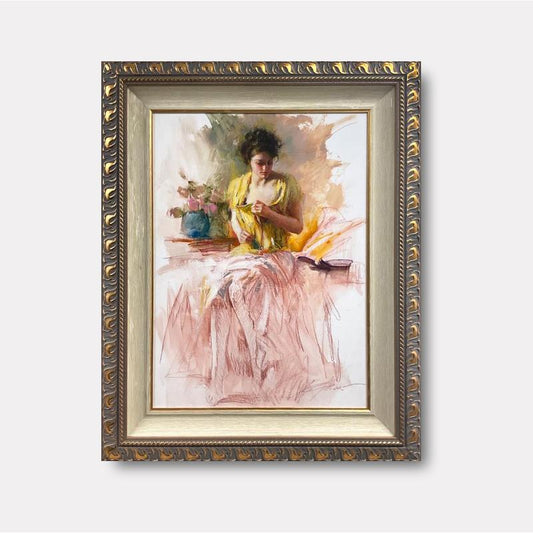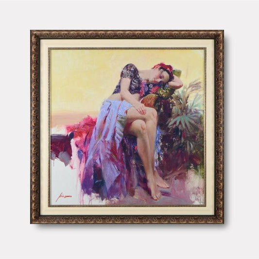 Pino's fine art is celebrated for its warmth, tenderness, and expressive use of color. His paintings, often featuring elegant women in serene settings, evoke a sense of nostalgia and timeless beauty. The emotional depth of his work resonates with viewers, making his pieces highly sought after by collectors and art enthusiasts worldwide. Pino's influence in the art world extended beyond his paintings, as he also mentored many aspiring artists, sharing his knowledge and passion for the craft.