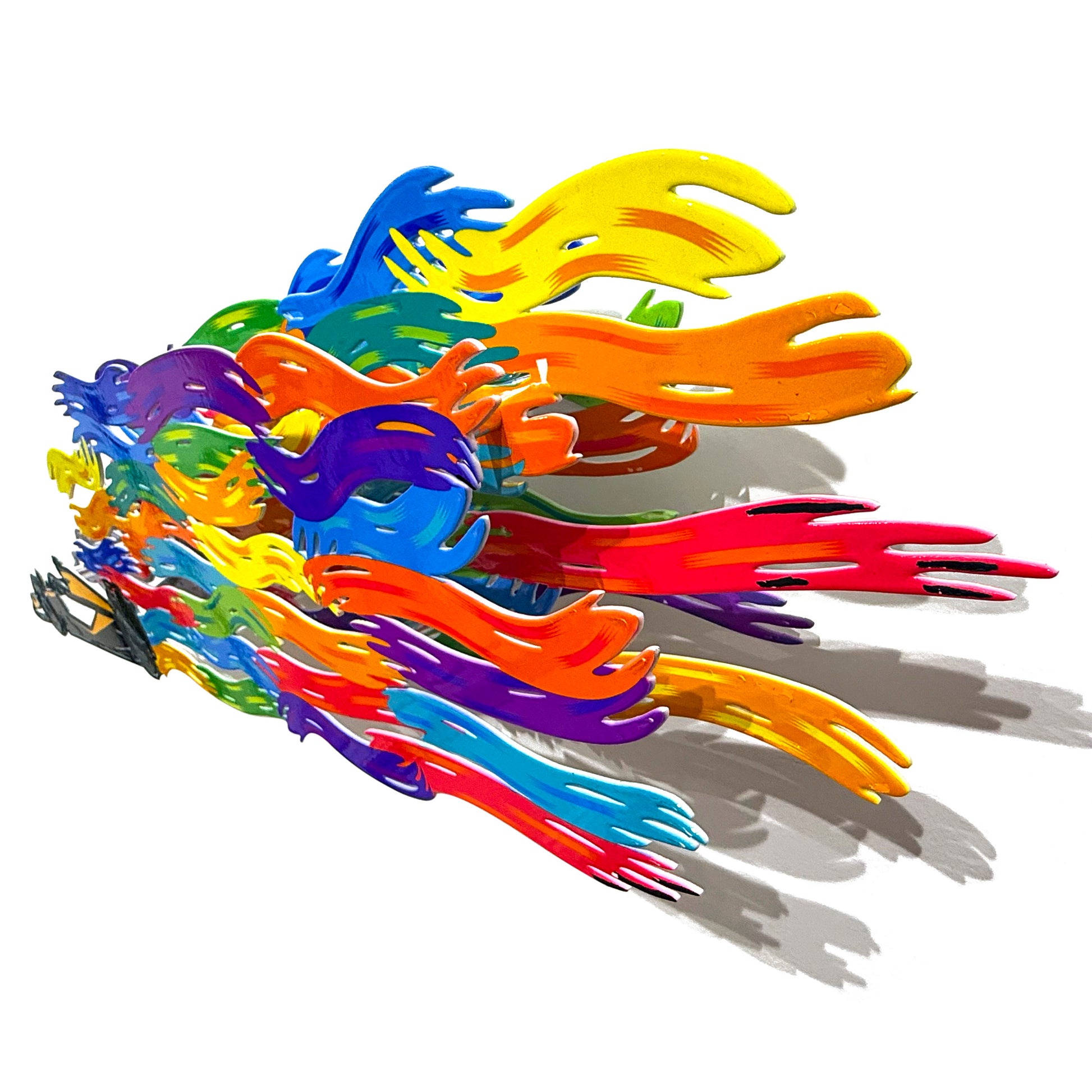 A mixed-media three-layer cutout metal sculpture celebrating the energy and spectacle of the Formula 1 Grand Prix in Las Vegas. Dynamic linework, vibrant multicolor detailing, and layered construction create a sense of speed and motion, while the sculptural relief adds depth and dimensionality. The bold palette and expressive contours capture the excitement of racing against the iconic Las Vegas skyline, resulting in a contemporary piece with strong visual impact.