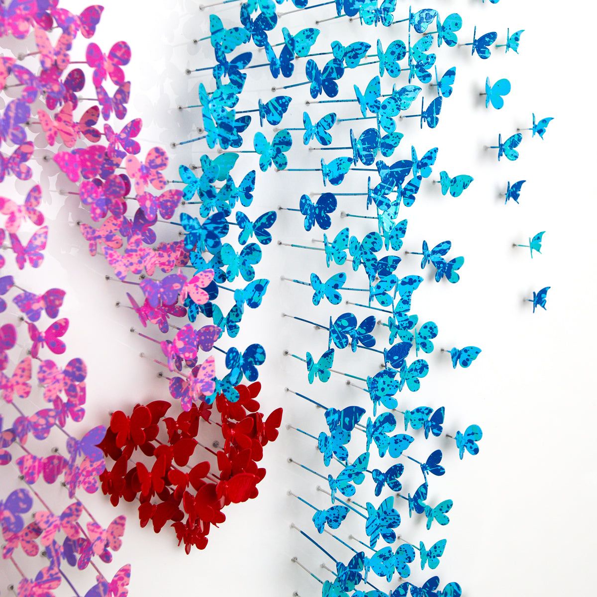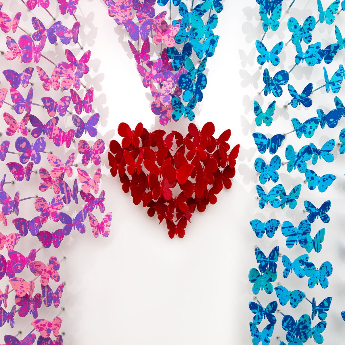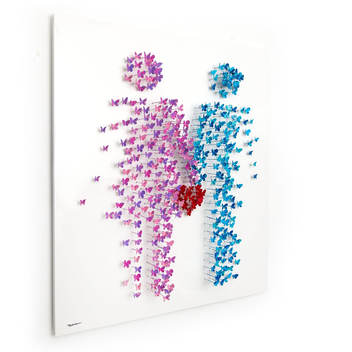 “Two Souls, One Heart” is an exceptional three-dimensional mixed-media artwork by internationally recognized artist Patricia Govezensky, known for her vivid colors, romantic themes, and distinctive layered metal technique. This piece features intricately cut and sculpted metal elements mounted on wood, creating expressive depth and a dynamic interplay of form and shadow.